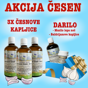 – 3 stekleničke s česnovimi kapljicami, 100 ml z izboljšano kapalko.